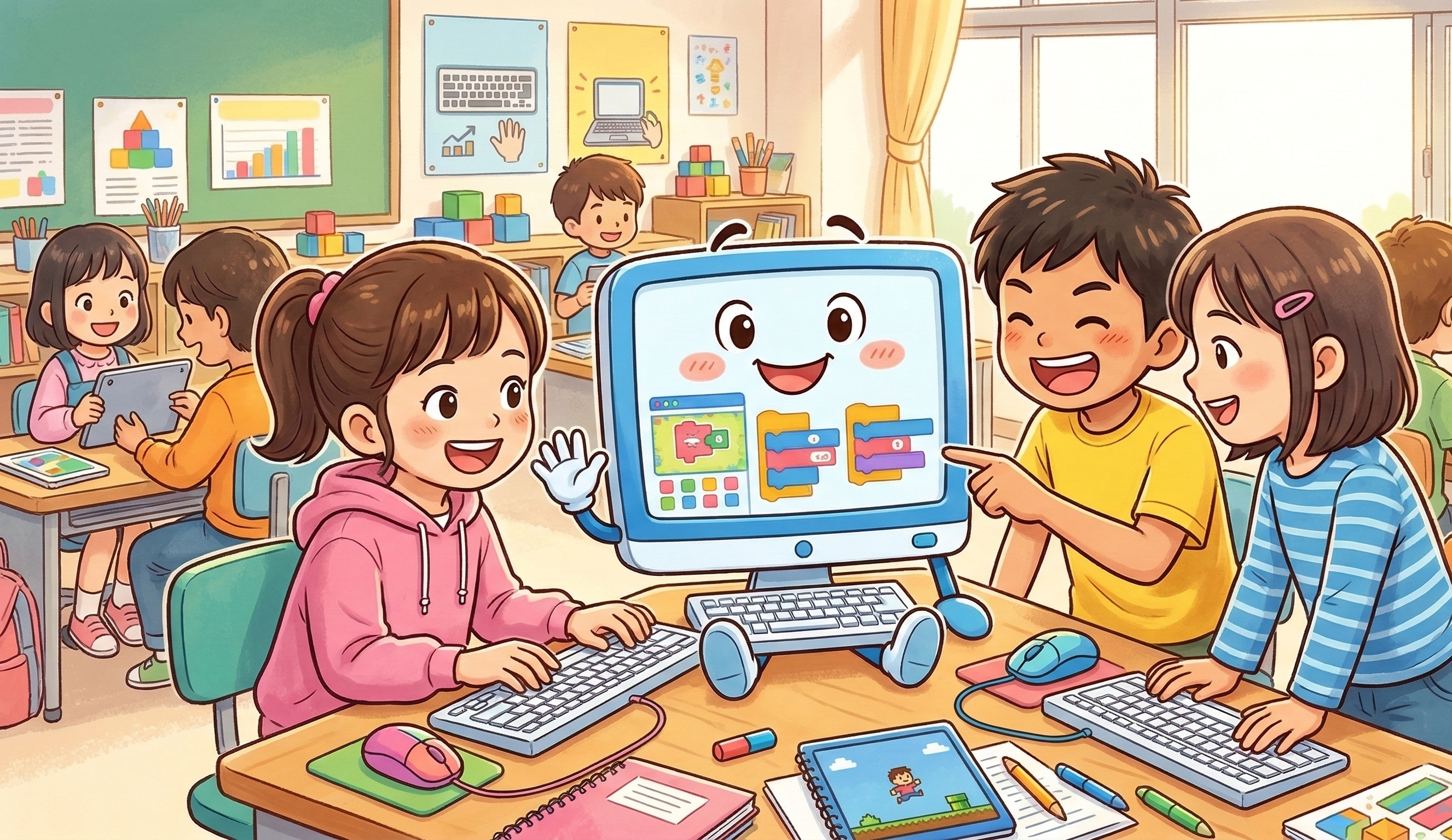 安心して学べるよう、ゲームづくりなどの体験を通して楽しみながら